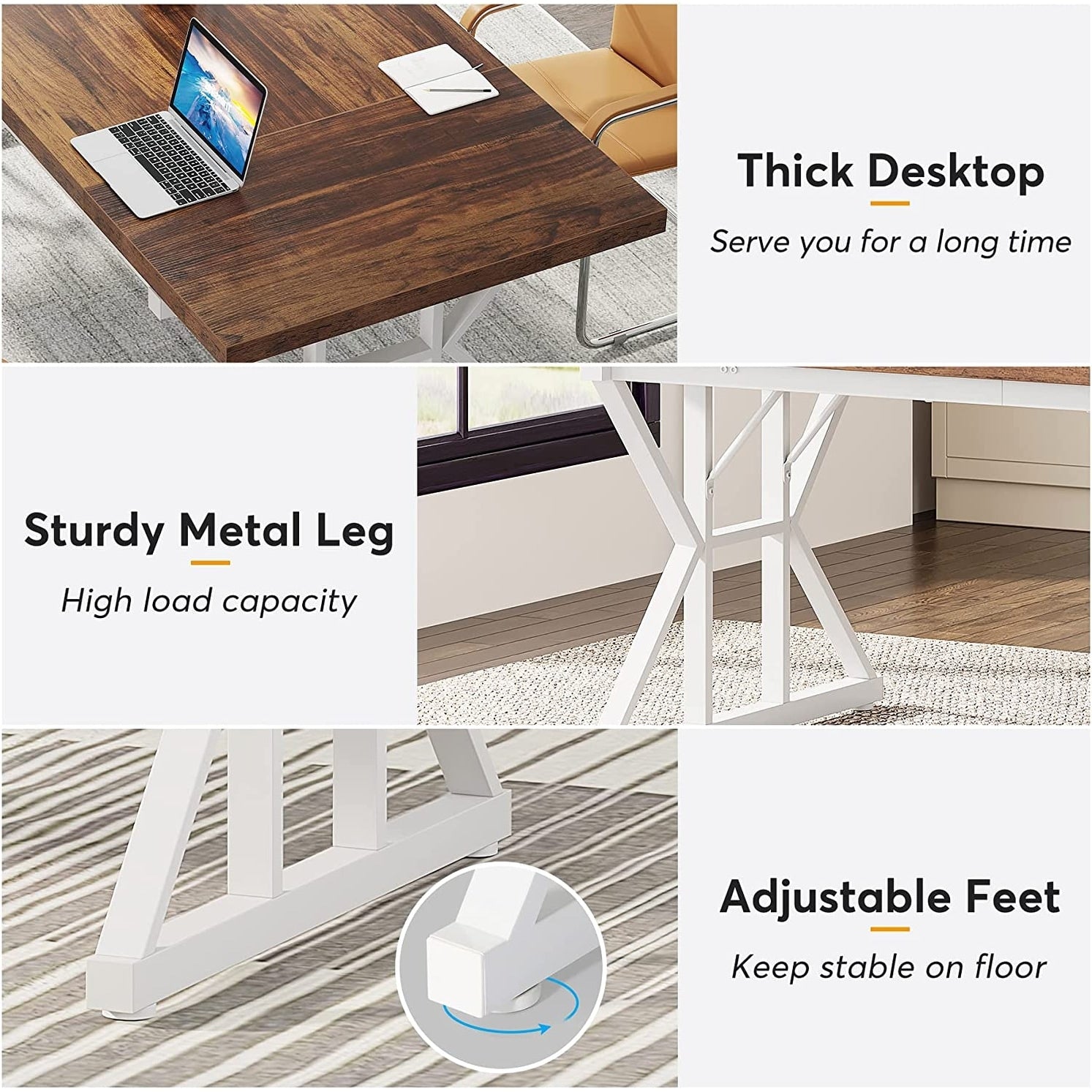 Bureau de direction de 70,8 pouces, grand bureau...